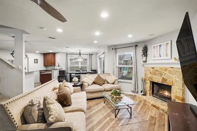 Located in the desirable Twin Mills community in Fort Worth, this home delivers the space, layout, and lifestyle today’s buyers are searching for. Quick access to US-287 keeps you well-connected to shopping, dining, schools, and everyday conveniences across the metroplex. Zoned to Eagle Mountain-Saginaw Independent School District and approximately 25–35 minutes from Dallas Fort Worth International Airport, the location offers strong everyday accessibility. Inside, the living room makes an immediate impression with a stone faced fireplace that anchors the space with warmth and character. A spacious laundry room doubles as pantry storage, adding unexpected functionality. Upstairs, all bedrooms are thoughtfully positioned alongside a versatile loft, ideal for a second living area, office, or flex space. The primary suite stands out with generous proportions and a spa-style ensuite featuring dual sinks, a separate soaking tub, and a walk-in shower. Each secondary bedroom includes a spacious closet, ensuring storage is never an issue. Out back, a fenced backyard with a patio creates an inviting outdoor setting, perfect for relaxing evenings, weekend gatherings, or entertaining with ease. Twin Mills enhances daily living with community amenities including a resort style pool, playgrounds, walking trails, green spaces, and neighborhood parks that encourage an active lifestyle. Well-located, thoughtfully designed, and move-in ready, this one is surely built to impress. Don’t wait, schedule your private tour and experience it in person. Discounted rate options and no lender fee future refinancing may be available for qualified buyers of this home.