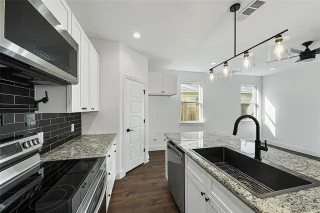 Located in the Historic Southside District, this beautifully designed 2-story new construction home offers modern style, functional living space, and an unbeatable location just minutes from Downtown Fort Worth, major highways, dining, and parks. This 3-bedroom, 2.5-bath home features an open-concept layout with luxury vinyl plank flooring throughout the main living areas. The spacious living and dining areas flow seamlessly into the kitchen, creating an ideal space for everyday living and entertaining. The kitchen is thoughtfully designed with granite countertops, a large center island, contemporary backsplash, ample cabinetry, and durable laminate flooring. Natural light enhances the clean, modern finishes throughout the home. Upstairs, you’ll find generously sized bedrooms, including a private primary suite with a spa-inspired bathroom featuring a separate shower and well-appointed finishes. Secondary bedrooms offer flexibility for guests, home office space, or additional living needs. Exterior features include a fully fenced and gated yard, professionally manicured landscaping, and a one-car detached garage. With its blend of modern construction, functional floor plan, and prime location near the heart of Fort Worth, this home offers exceptional value and convenience.