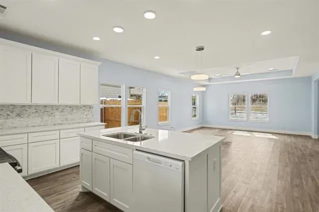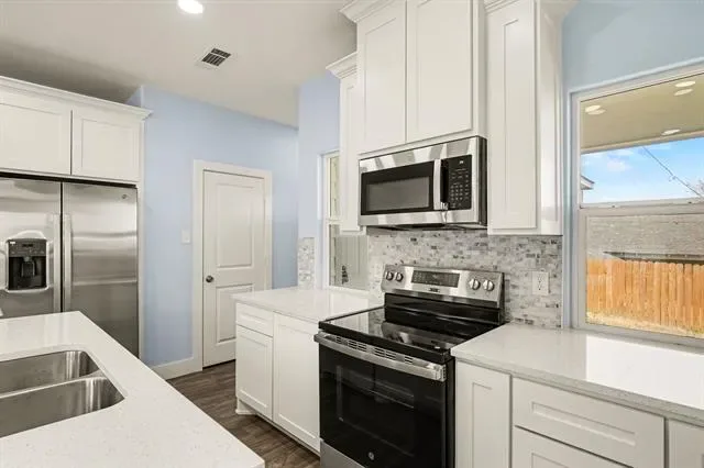 The beautiful kitchen features impressive countertops and a modern backsplash, making it a great space for everyday living or entertaining. Inside, you’ll find 4 spacious bedrooms and 2 full bathrooms. The primary suite is filled with natural light and includes a bathroom with separate sinks, a bathtub, walk-in shower, and a very large walk-in closet.