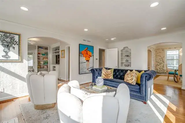 Just steps away from TCU Stadium, this enchanting English Tudor seamlessly blends timeless charm with contemporary elegance. Step inside this delightful three-bedroom, three-bath home and be greeted by arched doorways and rich solid wood floors that exude character and warmth. Natural light pours in through the abundant windows, creating an inviting atmosphere.