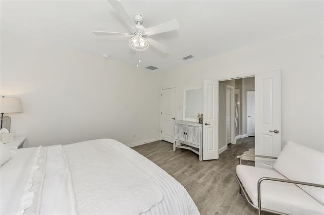 Since completion, the homeowners have added stylish improvements including updated light fixtures throughout, ceiling fans, a custom spare bathroom vanity with vessel sink and upgraded faucet, and rainfall plus handheld shower heads in both bathrooms. The kitchen and pantry area feature custom touches such as a custom pantry door, open shelving in the butler’s pantry, and added upper cabinetry in the office nook for additional storage. All recessed lighting has also been upgraded to bright daylight LED lighting.
