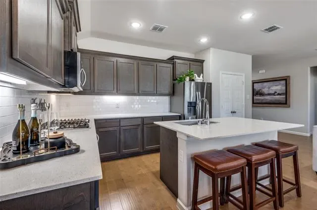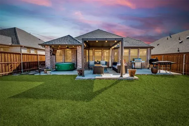 Beautifully appointed 2021 Trophy Signature Home is nestled in the coveted Ventana subdivision and offers a thoughtfully designed open-concept floorplan. This 3-bedroom, 2-bath home also features a private office with French doors—perfect for working from home or a quiet retreat. The heart of the home showcases a spacious living area with a cozy fireplace, flowing seamlessly into the kitchen complete with a large island, granite countertops, gas stovetop, and ample cabinetry—ideal for both everyday living and entertaining. The separate primary suite provides privacy and comfort with double sinks, generous counter space, and a relaxing ensuite layout. Additional highlights include a separate utility room, security system, tankless water heater, underground utilities, and a 2-car garage. Step outside to your private, wood-fenced backyard oasis featuring a covered patio, charming twinkle lights, and your own new hot tub—perfect for evening gatherings or unwinding outdoors. Ventana offers resort-style amenities including swimming pools, playgrounds, parks, greenbelts, and miles of walking, jogging, and bike trails. Located within an excellent Fort Worth school system with Benbrook Middle and High School, this home combines modern comfort, community living, and an unbeatable location.