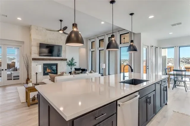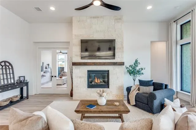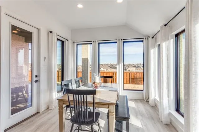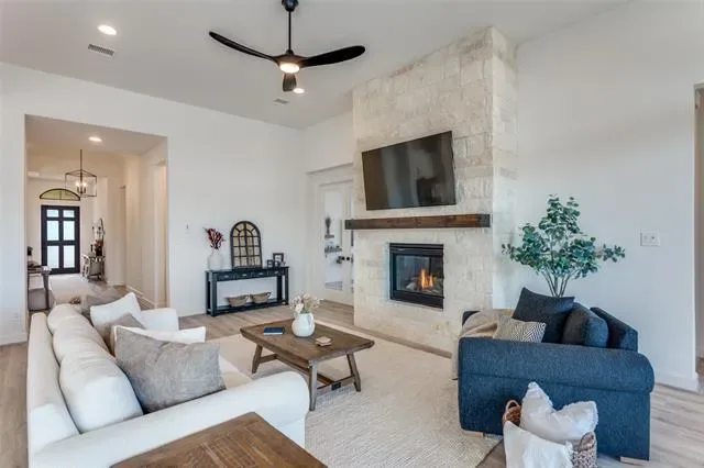 Tucked into a premier lot in the beautiful Ventana, this home isn’t just upgraded — it’s intentionally designed for the way you want to live! This exceptional home offers luxury from start to finish with extensive upgrades. With no homes directly to the left or behind, you’ll enjoy rare privacy, wide-open space, and peaceful backyard views. The expansive open green space creates a serene backdrop where deer are often seen, and walking trails connect throughout the neighborhood. An extended entryway warmly welcomes you into a dramatic living space featuring soaring 17-foot ceilings and an upgraded floor-to-ceiling stone fireplace that anchors the room beautifully. Upgraded long-plank laminate flooring flows throughout the majority of the home, including the primary bedroom, creating a seamless and modern feel. The kitchen is designed for both functionality and style, offering abundant cabinetry — including storage on both sides of the island that''s made for your hosting dreams — upgraded double ovens, under-cabinet lighting, stunning quartz countertops, and a sleek black granite composite sink. Thoughtful upgrades continue throughout, including custom floor-to-ceiling curtains in every room. The private primary suite features a spa-inspired bathroom complete with an upgraded barn door entry and a luxurious freestanding soaking tub designed for relaxation. Beyond the home itself, Ventana provides outstanding community amenities including two swimming pools, walking trails, a dog park, playground, and BBQ areas. Nearby Whitestone Golf Course, convenient access in and out of the neighborhood, and directly down the street from the school. This is a rare opportunity to own a beautifully upgraded, move-in-ready home with premium lot positioning in one of Benbrook’s most sought-after communities. A rare opportunity to own something truly special in Benbrook — where elegance meets ease, and every sunset feels like it was meant just for you. Is this your perfect match?