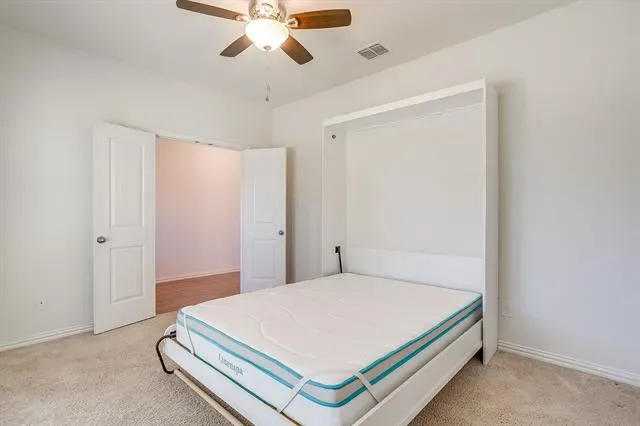 The split primary suite provides a relaxing retreat with dual sinks, a separate shower, garden tub, linen closet, medicine cabinet, and a huge walk-in closet, while the private office with double doors and a built-in Murphy bed (to convey to new owners) offers flexibility for guests or work-from-home days. The secondary bedrooms are equipped with ceiling fans, raised ceilings, reach in closets and are also split so everyone has privacy.