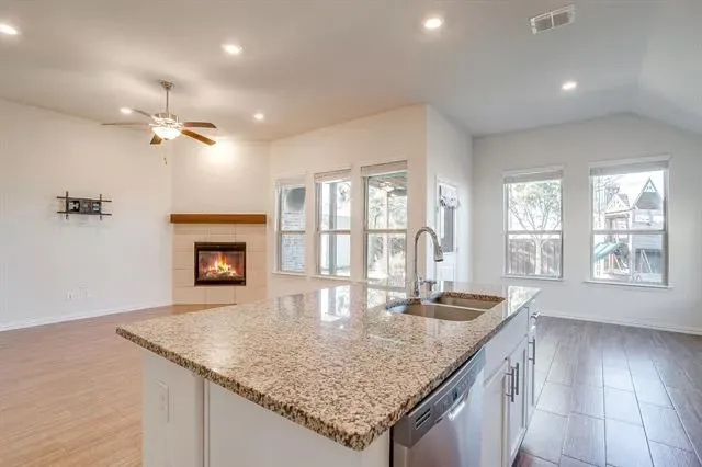 Welcome to this beautifully maintained single-story home in the tight-knit, family-friendly community of Ventana in Southwest Fort Worth. Offering one of the best layouts from Lennar in the neighborhood, this 3-bedroom, 2.5-bath home features an open floorplan with thoughtful upgrades throughout built up on a hill to allow for excellent drainage on a quiet street not far from the community amenities- pools, dog parks. playgrounds.