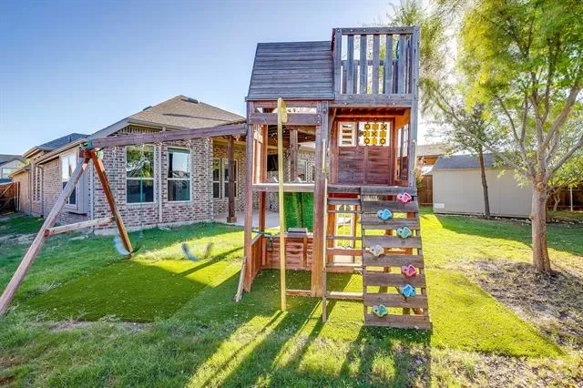 Covered Patio/Porch, Rain Gutters, Playground, Storage