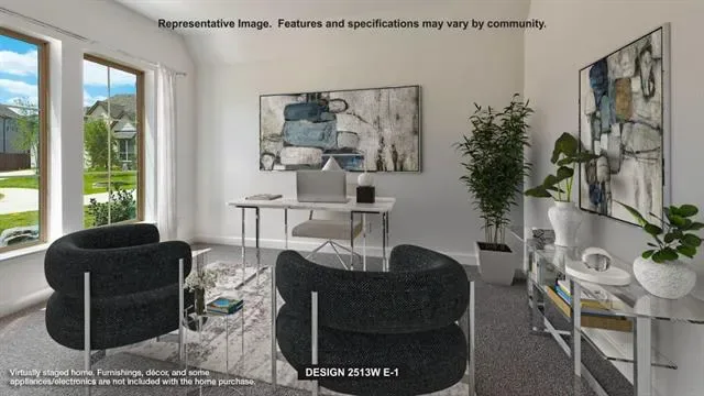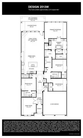 Extended entryway with 12-foot ceilings. Game room with French doors frame the entry. Spacious family room with a wall of windows and a wood mantel fireplace. Open kitchen offers an island with built-in seating space, a 5-burner gas cooktop, and a corner walk-in pantry. Primary suite with a wall of windows. Dual vanities, freestanding tub, separate glass enclosed shower and two walk-in closets in the primary bath. Guest suite just off the extended entry with a full bathroom and walk-in closet. Secondary bedrooms with walk-in closets. Utility room with private access to the primary bathroom. Covered backyard patio. Mud room just off the two-car garage.