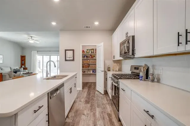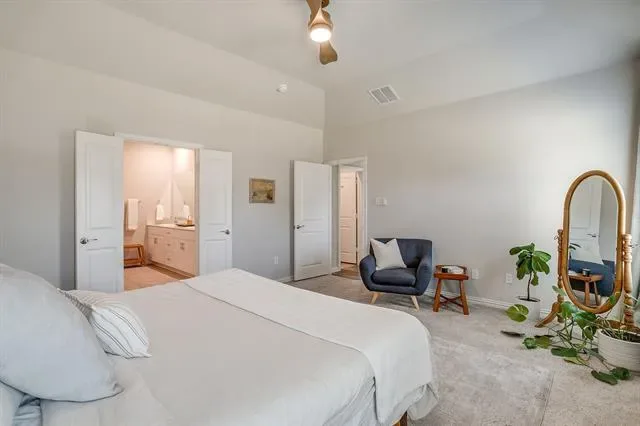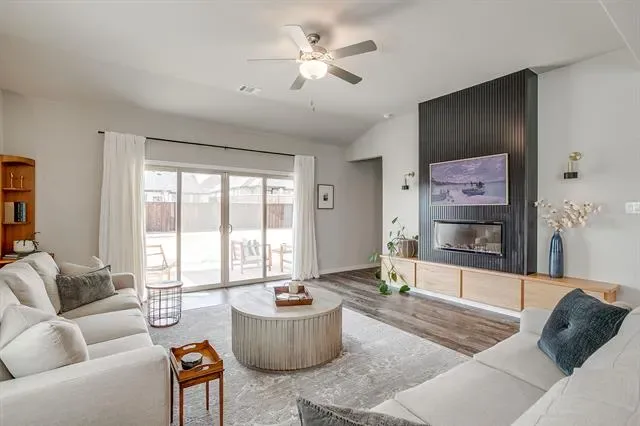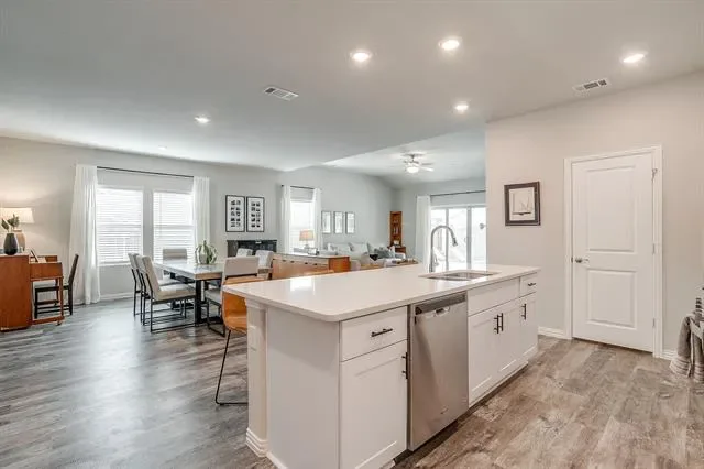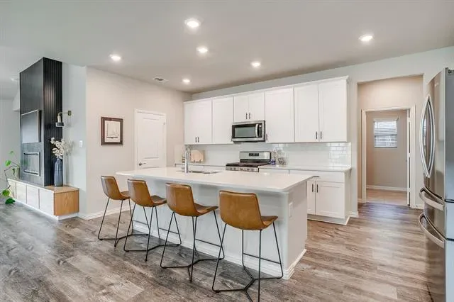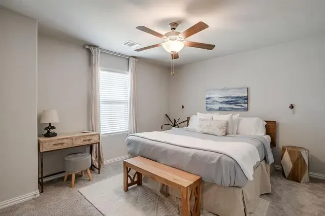 This two-story house in Ventana is a haven for entertainment and relaxation with multiple living spaces, an oversized primary suite, gorgeous indoor-outdoor layout and a guest room upstairs with its own en suite bathroom-ideal for guests or multi generational living. This house is located in an established part of VENTANA, walking distance to the two resort-style pools, playground, trails and dog park! Ventana residents also enjoy master-planned amenities like an open-air pavilion, outdoor grills and lively community events. Just inside this 3100-square-foot home, you''ll pass the dedicated OFFICE with chic French doors to discover the open-concept kitchen, dining and living room. Cooking and hosting is a dream with the kitchen’s WALK-IN PANTRY, white quartz countertops, gas range, and large island. The living room is anchored by a custom, built-in FIREPLACE and sliding glass doors that take you onto the covered patio, complete with an electric shade. A half bathroom for guests is also downstairs.The secluded PRIMARY suite on the first floor offers dual sinks, a walk-in shower and a HUGE CLOSET. Upstairs provides exceptional flexibility with another living space, perfect for a movie room or play room. You''ll also find 3 spacious secondary bedrooms, including one with a private bathroom and walk-in closet. The other two share a hallway bathroom – providing comfort and privacy for all. This home is in pristine condition and has everything to love about new construction – spray foam insulation, tankless water heater, a thoughtful floor plan with big closets, mud room, laundry room, and SO MUCH STORAGE. Part of the Benbrook school district with access to the nearby Rolling Hills Elementary School. An unbeatable location, minutes to local schools, highways, golf courses, restaurants, and shopping. Just 1 owner, built by Meritage Homes with the BEXAR floor plan. Designed for energy efficiency with smart home features to control the garage and thermostat from your phone.
