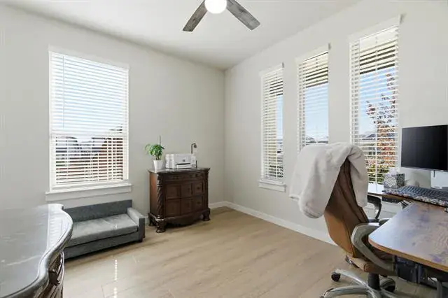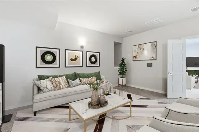 The thoughtfully designed floor plan features a private first-floor primary suite, complete with a spacious bedroom, spa-inspired bath with dual vanities, soaking tub, separate walk-in shower, and an expansive walk-in closet. A dedicated home office provides the ideal work-from-home environment, while additional living space, a game room, and a media room offer flexibility for entertaining and everyday living.