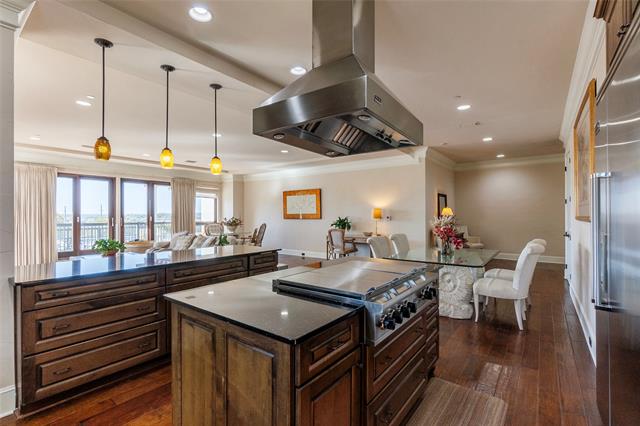 Seller giving $8,000 in CONCESSIONS TO BUYER at closing. First-floor condo in the exclusive Villa de Leon offering convenient access from your private patio to the very spacious outdoor amenities area which includes… pool, heated spa, pergola with outdoor seating, gas grill, and pizza oven. This is the perfect area to enjoy the gorgeous sunsets, Trinty River view and dynamic nighttime Fort Worth skyline from. The exclusive Villa De Leon has concierge that is always happy to assist, welcome your guests, receive packages, etc. The open floor plan in this condo is an entertainers dream, providing room to host large gatherings. The light-filled living room features a gas fireplace, wall of windows and sliding glass doors out to your patios. This condo has two patios. The gourmet kitchen includes a built-in Viking refrigerator, commercial-grade gas cooktop with cover and vent hood, double ovens, island, and large breakfast bar, very similar to double islands. The spacious primary suite offers room for sitting area with an ensuite bath featuring a jetted tub, separate shower, dual vanities, and a generous walk-in closet. The secondary bedroom also includes its own walk-in closet, perfect for guests or flexible use. Community amenities elevate the lifestyle even further: with a well-appointed community room, offering a piano, pool table, seating areas, and kitchen that may be used for hosting events. The HOA covers gas and water costs. Secured parking garage is located in lower level, with two deeded parking spaces and building storage units. Owners have access to an additional gated parking lot. Sundance Square is only minutes away. Luxury, convenience, and comfort come together beautifully in this exceptional Villa de Leon condo. Drapes, washer and dryer are included. Sellers will also be willing to include furnishings, with an acceptable offer.