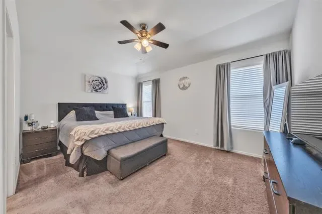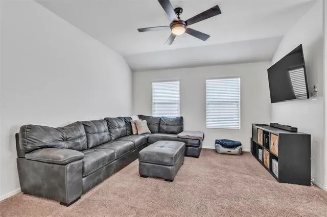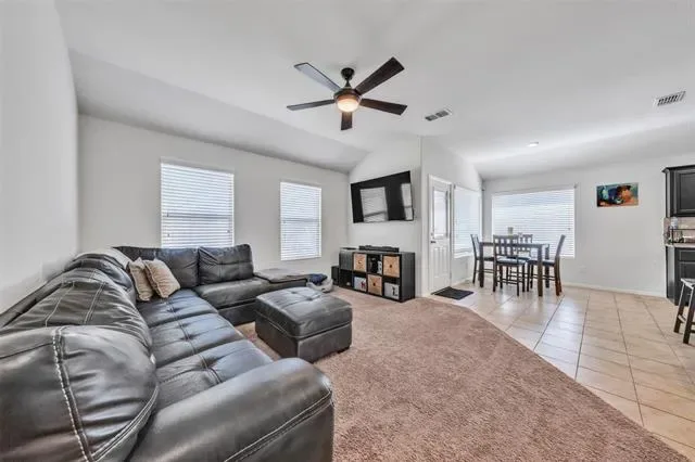 Seller is offering up to $5,000 in closing cost assistance! Welcome home to this well-maintained 4-bedroom, 2-bath home designed with families in mind. The open-concept layout offers an easy flow between the kitchen, dining, and living areas—ideal for family time and entertaining. The kitchen features granite countertops, tiled backsplash, black appliances, a gas stove, and built-in microwave, with durable tile flooring throughout and carpeted living and bedrooms for added comfort. The private primary suite provides a peaceful retreat with dual sinks, an en-suite bath, and a spacious walk-in closet. Thoughtful safety and convenience upgrades include a Vivint full home security system with doorbell and back door cameras, window and door alarms, motion sensors, and keyless entry at the front and garage doors. Enjoy outdoor living in the fully fenced backyard with 6-foot privacy fencing and steel posts, a covered patio with an extended 10×10 concrete pad, and a full sprinkler system—perfect for kids, pets, and weekend gatherings. The community offers family-friendly amenities including a pool, cabana, playground, and a 2-acre aerated pond. Located in the highly sought-after Eagle Mountain–Saginaw ISD, with all schools conveniently within a 1–2 mile radius, this home offers everyday ease for busy families. For the lake lovers, Eagle Mountain Lake is just a short 10-minute drive away, while major grocery stores are also nearby. Enjoy an easy commute to Lake Worth, making this home the perfect blend of comfort, community, and convenience—everything a growing family needs.