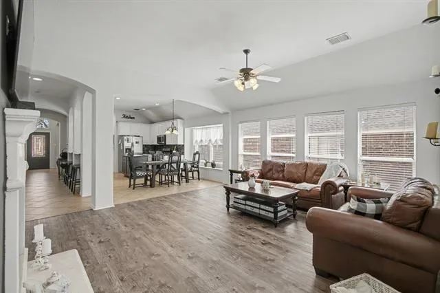 Come see this wonderful home in the Villages of Sunset Pointe! This spacious floor plan features 4 bedrooms, 2 living areas, and 2 dining areas, offering plenty of room for everyday living and entertaining. A long, open entryway with elegant arches welcomes you in and fills the home with natural light. The home features all LVP and tile flooring throughout along with updated hardware for a modern touch. The kitchen was updated in 2026 and offers beautiful finishes, making it the heart of the home. Enjoy the open-concept layout that connects the kitchen, living, and dining spaces. Conveniently located near shopping with easy access to Chisholm Trail for a quick commute to downtown. Located in Crowley ISD. Neighborhood HOA includes a community pool—perfect for staying cool on hot Texas summer days!