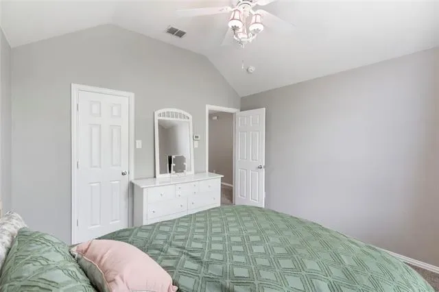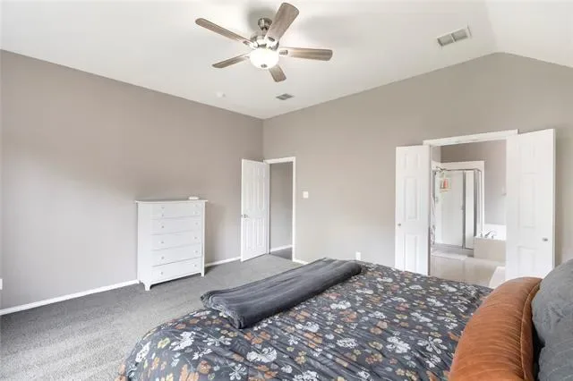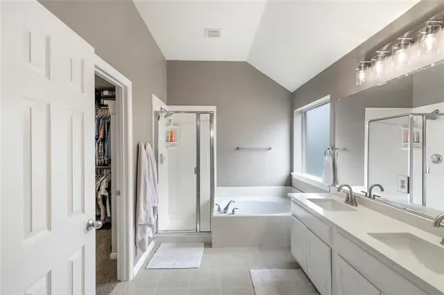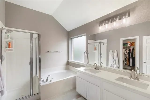 The spacious primary suite features vaulted ceilings and abundant natural light, the ensuite bath offers dual sinks, a soaking garden tub, a separate shower, and a large walk-in closet. Secondary bedrooms are generously sized, with most offering walk-in closets, including a downstairs bedroom with a full bath ideal for guests. A versatile upstairs bonus room provides additional space for relaxing or entertaining.