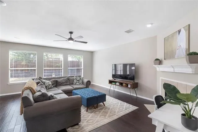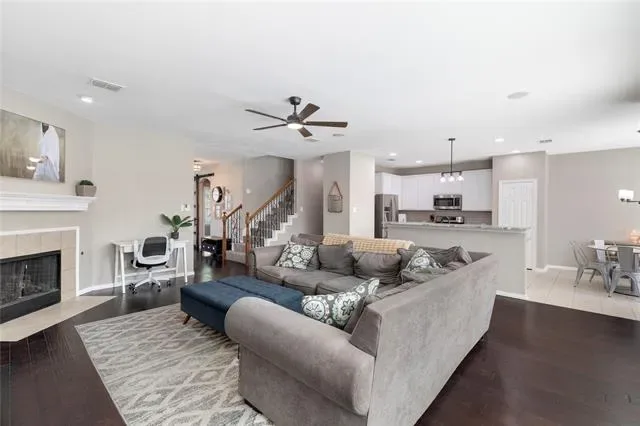 Welcome to this beautifully updated 5-bedroom, 3-bath home situated on a spacious corner lot in the highly sought-after Villages of Woodland Springs, offering beautiful landscaping and inviting curb appeal. Step inside to a welcoming entryway that opens to a light-filled main living area featuring a decorative gas fireplace, abundant natural light, and a spacious, functional layout. The open-concept design flows seamlessly into the kitchen and dining areas, while also connecting to an additional family room near the entry—perfect as a secondary living space or flex area.