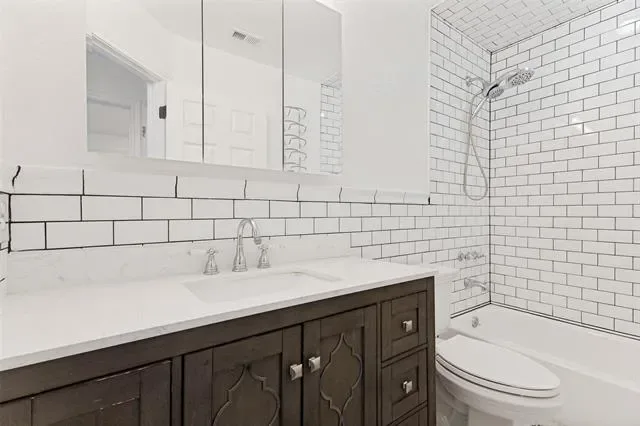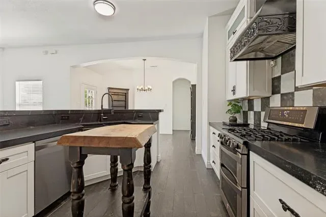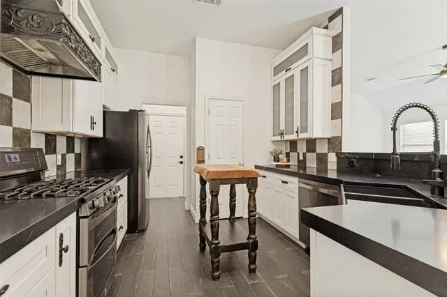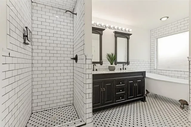 Thoughtfully updated, this one-owner home features quality improvements matched with timeless charm. Light flows effortless throughout with neutral updated paint 26 and updated light fixtures 26. Kitchen boasts gorgeous countertops with thick granite, accentuated backsplash, scrolling vent hood, gas range with dual oven, portable island, custom cabinets, and complementing appliances. Breakfast showcases custom shelves which complement the kitchens design. Commercial grade wood-like ceramic floors flow cohesively throughout home with Daltile designer tiles in bathrooms. Primary bathroom features claw footed tub, furniture-like vanity with dual sinks and complementing mirrors, a large walk in closet, separate shower and separate WC. Secondary bath also has furniture-like vanity with gorgeous wrapped tile. Back yard features extended back patio and ample grass area. Additional features include roof 2021, updated HVAC system, sprinkler system, gutters, and storage in garage. This gorgeous home is one of a kind, not to be missed!