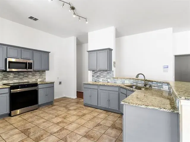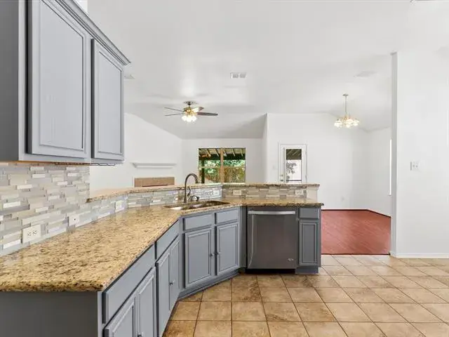 The kitchen offers granite countertops, stainless steel appliances, tile backsplash, ample cabinet space, and opens seamlessly to the dining area and living room, complete with a gas fireplace. The spacious primary suite includes dual sinks, a garden tub, separate shower, and a large walk in closet. Each secondary bedroom also features its own walk in closet, providing excellent storage throughout the home.