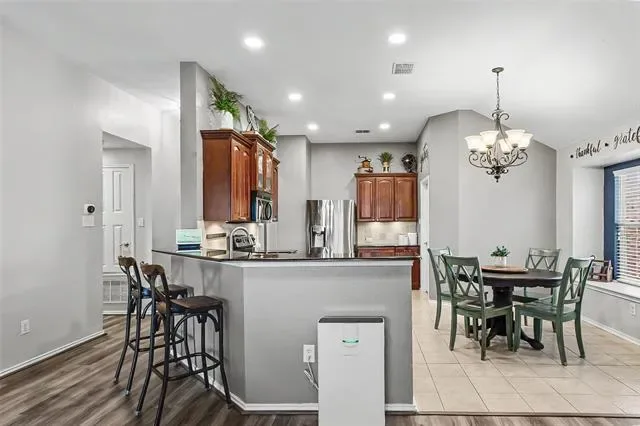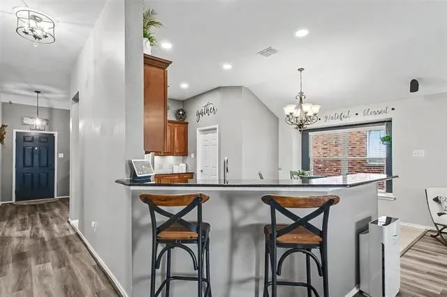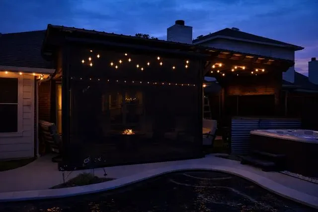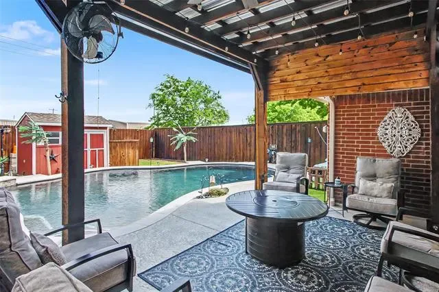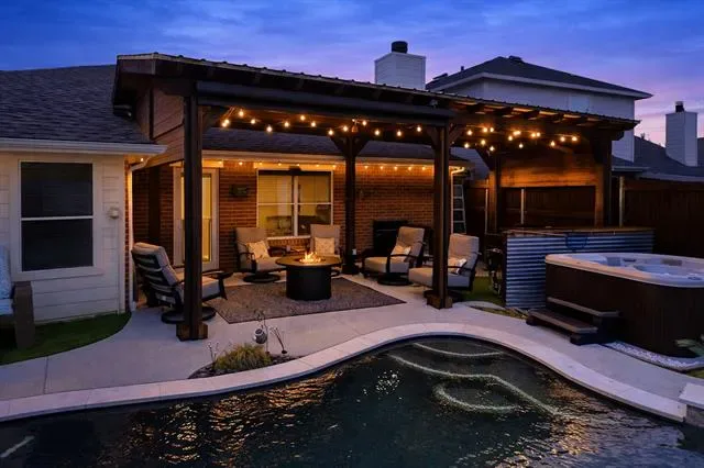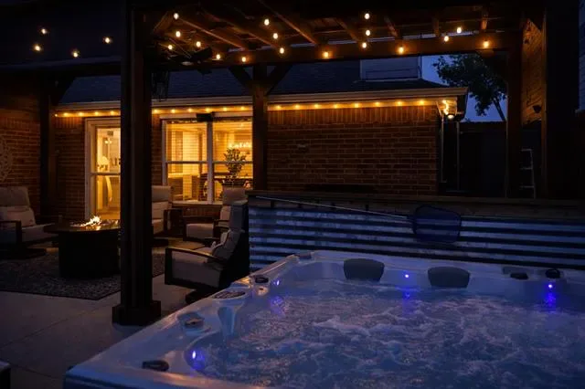 Step outside and prepare to be wowed by your own private retreat. The saltwater pool features a hot tub, water fountain, LED multicolor lighting, and a Black Pebble Tec finish completed in November 2025. The filtration system was replaced in 2023. You’ll also love the pergola and attached outdoor dry bar with refrigerator, along with a motorized remote-control UV screen, making the outdoor space perfect for relaxing with a cold drink while enjoying the pool and spa.