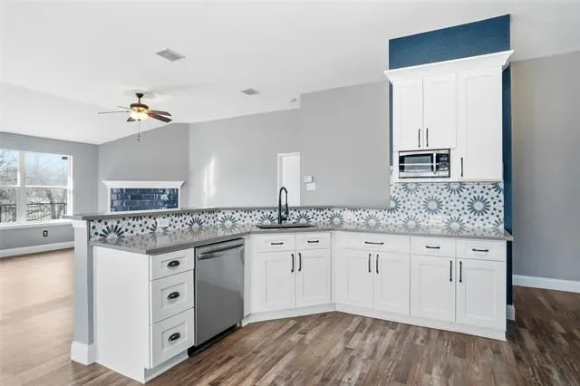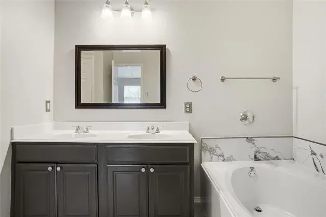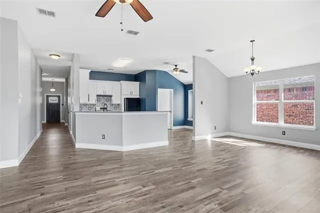 Pride of Ownership shows in this meticulously cared for Villages of Woodland Spring one story home. Welcome to 11917 Hickory Circle beautifully updated and ready for immediate move in. This home features a fantastic pond view and an open floor plan with the Great Room hosting a fabulous living space with gas fireplace, kitchen, and dining space all combined. The kitchen is updated with all new kitchen cabinets, soft close drawers, quartz counter tops, matte finish tile backsplash, granite composite farm sink, LED light fixture, designer paint color, and an abundance of lower drawers instead of cabinets for easy access. All flooring replaced with water proof LVT Luxury Vinyl in 2024. Enjoy your family dinners in the dining room space with views of the pond. The luxurious primary suite has a new glass surround and porcelain tile in the separate shower surround and outlining the garden tub for a gorgeous accent, dual sinks, linen closet, and a very spacious closet. The split floor plan provides three spare bedrooms that are generous in size with walk-in closets. 10 x 10 covered patio to sit and enjoy the view of the breathtaking pond. Backyard large enough for pool or play. Don’t miss all the amenities Villages of Woodland Springs offers: Amenity Center, pools, volleyball courts, basketball half courts, slide pool park, tennis courts, miles of greenbelt trails for walking, rollerblading and biking. Only 15 minutes to Alliance Town Center for shopping and dining.