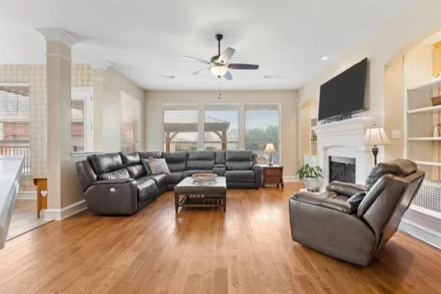 Open House, Saturday May 2nd from 2p-5p. Beautiful home in the highly desirable Woodland Springs community in Fort Worth, located in sought-after Keller ISD. This welcoming neighborhood offers multiple community pools, catch-and-release ponds, walking trails, parks &' playgrounds that are perfect for an active lifestyle. This well-designed 1.5-story home features most of the living space on the main level. Upstairs, you’ll find a large bonus room with a half bath, ideal as a bedroom, game room or 2nd living area. Downstairs boasts spacious living areas with an open-concept kitchen &' living room. The kitchen features a large island, abundant counter space &' cabinetry, stainless appliances &' an easy flow for entertaining. The living room offers built-in cabinets, bookshelves, a stone fireplace, high ceilings &' plenty of natural light. The primary suite includes dual sinks, a walk-in shower with dual shower heads, a large soaking air tub with chromotherapy &' a unique electric fireplace between the tub &' shower. Wood-look tile floors enhance durability &' style throughout the main living areas. Additional features include a second living room or office at the entry, a formal dining room, a flex space with built-in desk and shelving, solid doors throughout, tall baseboards and crown molding, 2-inch blinds &' ample storage. Secondary bedrooms offer a private hallway with a closing door that is perfect for guests. Step outside to enjoy a covered patio and saltwater pool with a waterfall feature which is ideal for relaxing or entertaining. A 3-car garage and extended driveway provide excellent parking, while the large front porch and brick walkway add charming curb appeal.