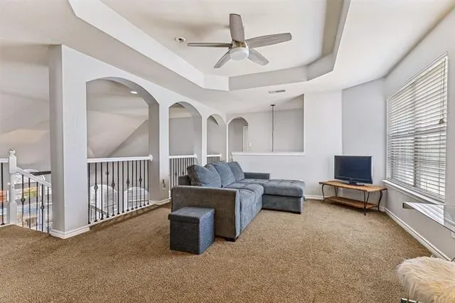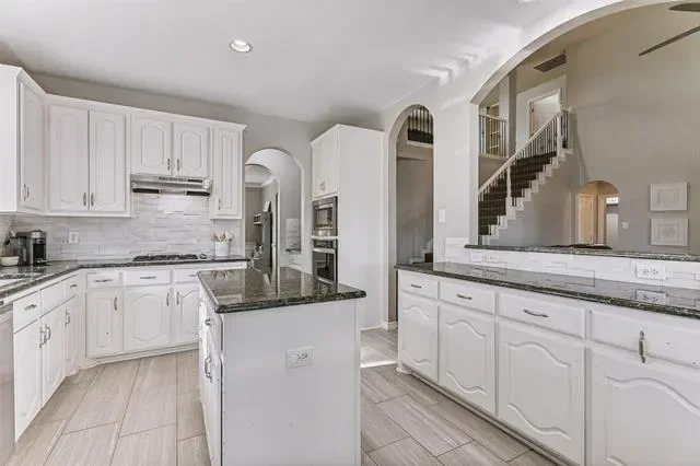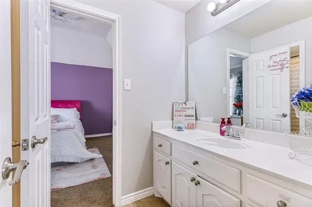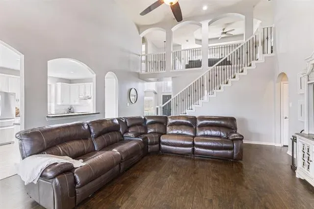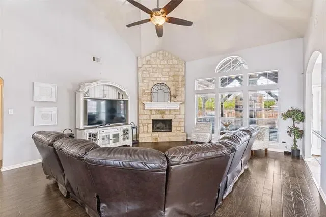 Welcome to this spacious 5-bedroom, 3.5-bath home in the highly sought-after Villages of Woodland Springs, zoned to award-winning Keller ISD. With over 3,200 square feet, this home offers an exceptional layout, generous living areas, and standout outdoor features. Inside, you’ll find soaring ceilings, rich wood flooring, and abundant natural light. The main living area features a stunning stone fireplace and opens seamlessly to the kitchen with granite countertops, gas cooktop, large island, and butler’s pantry. A private office and formal dining space add flexibility for both work and entertaining. The primary suite is located on the first floor and offers a relaxing retreat with dual vanities, soaking tub, separate shower, and walk-in closet. Upstairs includes a spacious game room and generously sized secondary bedrooms. This home presents a fantastic opportunity for buyers to bring their own style and updates while enjoying a well-designed floor plan and desirable features.