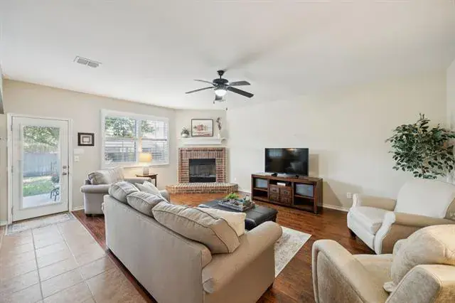 Welcome to your dream home located in the highly sought-after Villages of Woodland Springs. This beautifully maintained residence is within walking distance of several Keller ISD schools, making it perfect for families. Step inside to discover stunning laminate wood floors that flow through the formal dining room and spacious living room, featuring a cozy brick corner fireplace. The entryway, kitchen, and powder room are adorned with elegant ceramic tile. The home is equipped with plantation shutters on all first floor windows, allowing natural light to pour in while providing a view of the expansive covered patio and beautifully landscaped backyard. An impressive oak tree offers ample shade during hot summer days. All bedrooms are situated on the second floor, accompanied by a generous game room living area and a conveniently located laundry room with additional storage. The master suite impresses with a large walk-in closet and a luxurious master bath, complete with a garden tub and separate shower. Each of the additional bedrooms boasts double door closets. The sizeable backyard is perfect for entertaining or relaxing, featuring a substantial covered patio for outdoor dining. Enjoy an active lifestyle with access to six community pools, scenic biking and walking trails, tranquil fishing ponds, and numerous playgrounds.