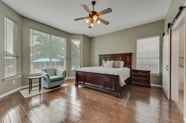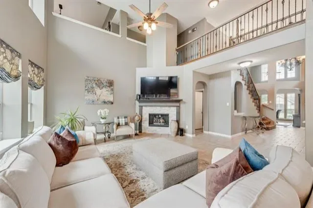 Perfectly situated on an oversized lot in the highly sought-after Villages of Woodland Springs, this beautiful home blends functionality with extensive updates throughout. The downstairs features an open-concept layout with a large, fully updated eat-in kitchen showcasing impeccable finishes. Highlights include granite countertops, abundant cabinetry, a spacious island, newer stainless steel appliances, and updated fixtures. The spacious primary suite offers a sitting area, direct access to the pool, and a spa-like ensuite with a large frameless shower and an elegant standalone tub. Also on the main level are a private office with vaulted ceilings and a formal dining area. Upstairs, you’ll find a large living space or game room with direct access to a media room, separated by barn doors and equipped with surround sound. The split layout includes three oversized bedrooms and two full bathrooms. The outdoor living space completes this exceptional home, featuring a sparkling pool with a waterfall (2017), an extended patio, an 8-foot privacy fence, a storage shed, and plenty of yard space. The community offers fantastic amenities and is located within the top-rated Keller ISD, with convenient access to shopping and major highways.