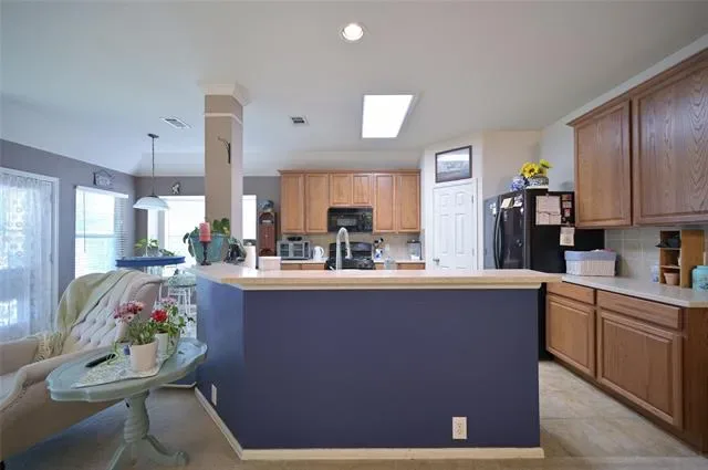 BEAUTIFUL HOME in the HEART OF KELLER, TEXAS with OVER 1,755 sq. ft., ideally located within the highly acclaimed Keller Independent School District! This impressive single story, one Owner Home built by Pulte offers an expansive living area with an open, inviting layout, along with natural light that create a bright, airy ambiance. The large traditional kitchen features an abundance of cabinet and counter space with Corian countertops, tiled backsplash, wrap around Breakfast Bar, updated sink and garbage disposal with a separate bright breakfast nook. The spacious living area with corner W-B brick Fireplace opens to the 2nd Dining area, perfect for family or entertaining guests with plenty of room for all. Nice split Bedroom arrangement with an oversized primary suite and luxurious en-suite bath featuring a separate shower, jetted garden tub, wide two sink vanity and walk-in closet. Two additional bedrooms, each generously sized on the right side of the house offers both privacy and comfort. Extended tiled entry and wet areas with ceiling fans in the Living and all Bedrooms. Full sized Laundry Room with added gas dryer hook up, shelf and drip dry rod. Outside enjoy a covered Patio, extended open patio and nicely landscaped 6 foot privacy fenced backyard and ROOF is ONLY 4 YEARS OLD! Community Pool, Splash Pad, covered picnic area and Dog Park plus just minutes from Old Town Keller, shopping and Bear Creek Park, with many family related activities, including the popular Pickleball Courts! With its perfect blend of traditional comfort and functionality located in an unbeatable location—this Keller gem is ready to make it your next home. Close proximity to I-35 and HWY 377 with nearby shopping, employers and endless dining options! Schedule your showing today!