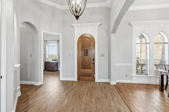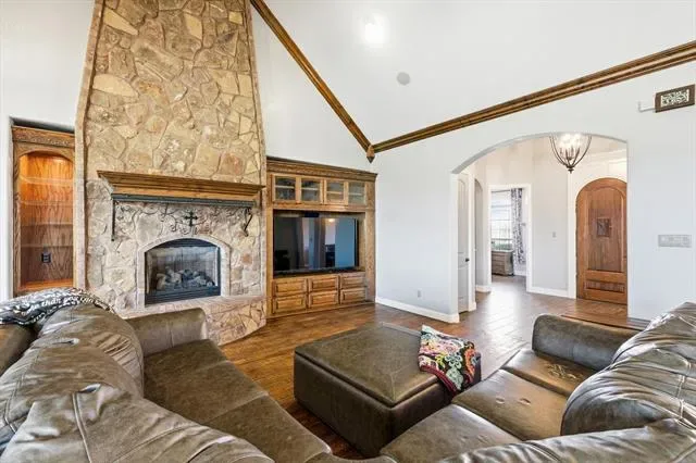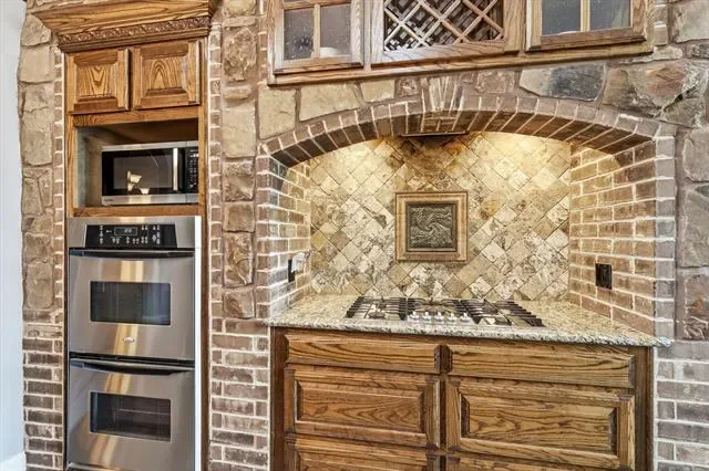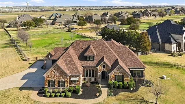 Situated on a sprawling 1-acre corner lot in the Vista Ranch community and zoned to sought-after Northwest ISD, this exceptional 3-bedroom, 3.5-bath home offers luxury living. From the moment you enter, you’ll notice the abundance of natural light, stunning interior stonework, and beautiful hand-scraped hardwood floors that flow through the inviting living spaces. The gourmet kitchen is designed for gathering, featuring granite counters, stainless steel appliances, a large island, and abundant cabinetry – all overlooking the spacious living area ideal for entertaining. The primary suite serves as a serene retreat with a spa-inspired ensuite bath offering dual vanities, a soaking tub, separate walk-in shower, and a generous walk-in closet. One of the secondary bedrooms has a private full bath and can be used as a mother-in-law suite. The upstairs game room can be converted into a 4th bedroom and offers privacy for guests or multigenerational living! The laundry room has a second water line. Step outside to your personal outdoor oasis, complete with a resort-style backyard featuring a sparkling pool, covered patio, outdoor kitchen, and pergola, creating the perfect setting for entertaining or relaxing year-round. The expansive lot, open-concept neighborhood feel, and secondary garage add both functionality and room to spread out. An automatic sprinkler system supplied by a private well means no water bills, keeping the lush landscape beautiful year-round. Recent updates include new paint and baseboards, upgraded tile flooring, 8 replaced windows, new garage doors, re-primed pergola, upgraded pool control box, new outdoor ceiling fan, and major well improvements including a new deeper well, casing, and pump – providing peace of mind for years to come. Residents enjoy community parks, walking trails, and convenient access to shopping, dining, and entertainment while still savoring the space and tranquility of country-style living.