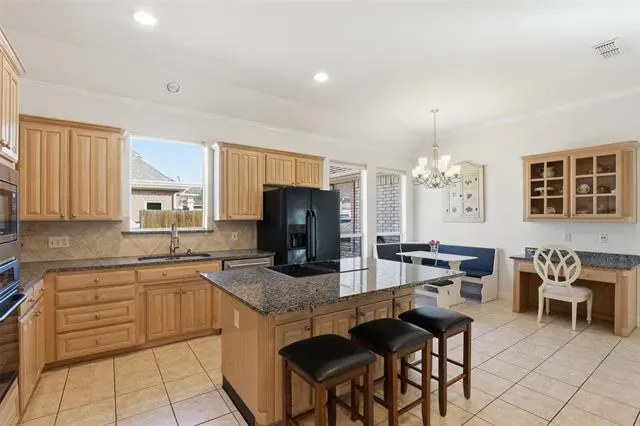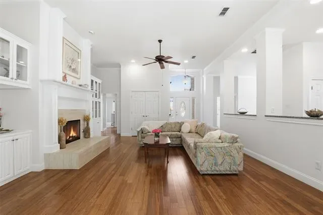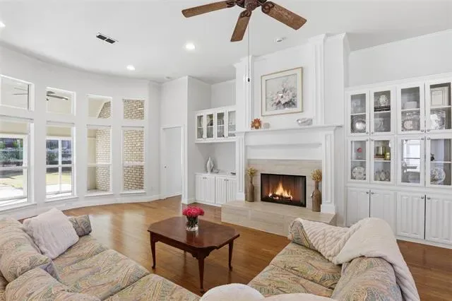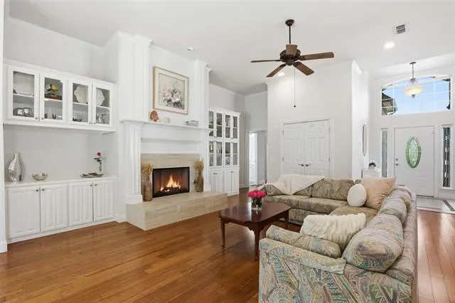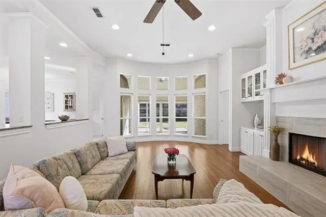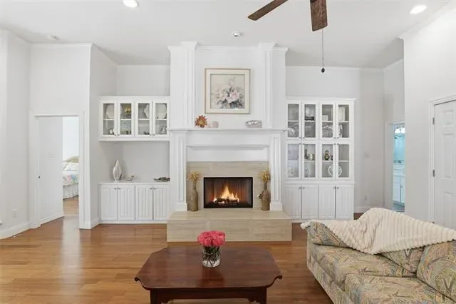 Designed with an open and inviting floor plan, the home showcases rich hardwood floors and a spacious living area enhanced by thoughtfully crafted custom built-ins, providing both character and abundant storage. The large kitchen serves as the heart of the home, featuring a center island, granite countertops, and ample space for gathering and entertaining.