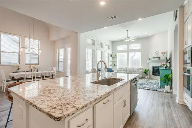 Step into the lifestyle you’ve been dreaming of at 1812 Narita Bend, nestled in Aledo’s award-winning Walsh Ranch community. This home perfectly balances charm and modern efficiency, offering a retreat-like feel just minutes from Fort Worth in the highly acclaimed Aledo ISD. Welcoming you with exceptional curb appeal, this four-bedroom residence plus separate study is bathed in natural light. The heart of the home is an open-concept kitchen, dining, and living area featuring a light and bright kitchen with creamy white cabinetry, a spacious island with a farmhouse sink, gas cooktop, convection oven, and a walk-in pantry. The inviting living room is centered around a modern corner fireplace with open shelving for a contemporary touch. The downstairs primary suite is a peaceful escape with vaulted ceilings and a spa-like bath featuring an oversized shower and a professionally organized walk-in closet. Upstairs, you''ll find two additional bedrooms and two separate living areas—perfect for a playroom, media center, or work out room. This home is designed for convenient and practical living with a decked walk-in attic, overhead garage storage, and spray foam insulation in the garage. Situated near the scenic Overlook Park, the property features a large backyard with plenty of room to design your dream pool. Best of all, front yard maintenance, an impressive list of amenities and high-speed internet are included in your HOA dues. The Walsh Ranch Lifestyle is all about connection. Enjoy world-class amenities including: Resort-style pools, tennis and basketball courts, and scenic hiking trails. An on-site market and gas station, and 10,000 SF fitness center. Primrose Daycare and excellent Walsh Elementary are both within walking distance! Plentiful green spaces and playgrounds designed for gathering. Experience the perfect blend of comfort, convenience, and community. Welcome home!