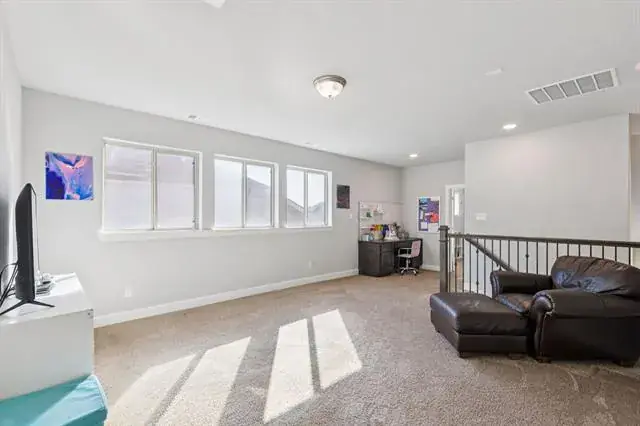 Upstairs, you will find a built in study desk, two large secondary bedrooms, and a spacious flex room that can function as a media room, game room, secondary office, or even a 5th bedroom. The primary suite is generously sized with room for a sitting area, and the primary bath features separate sinks, abundant counter space and storage, plus a super shower upgrade.