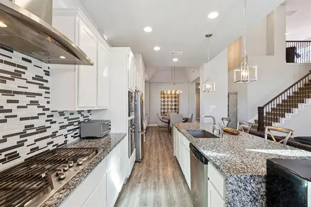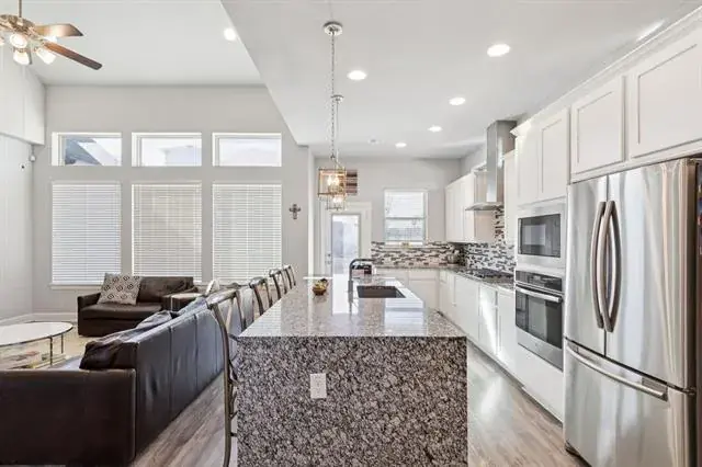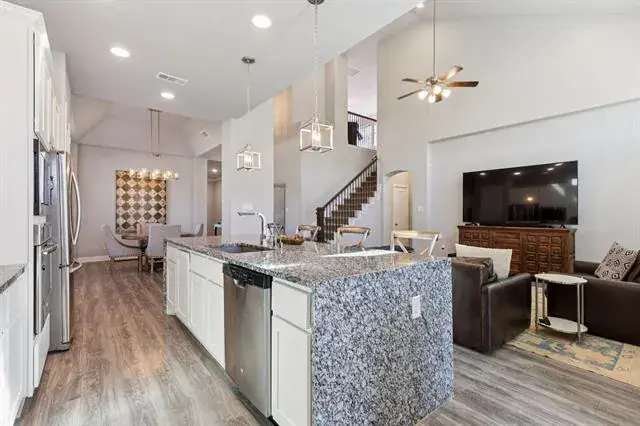 Built in the heart of Walsh in Aledo ISD, this 4 bedroom home is perfectly positioned just one block from Walsh Elementary, Crescent Park, and Theatre Park, and is surrounded by friendly neighbors and a true sense of community. The floor plan is a standout and was designed for both everyday living and effortless entertaining.