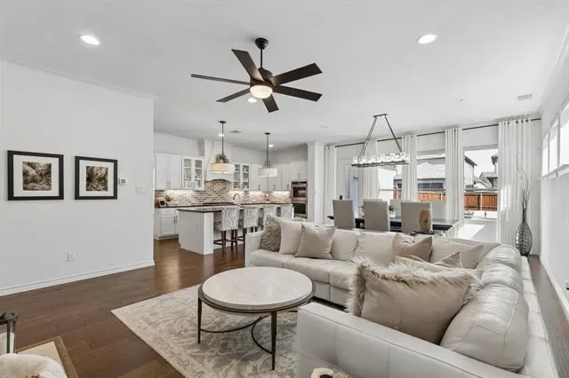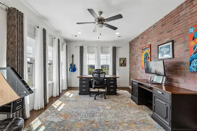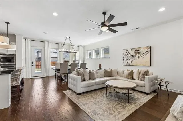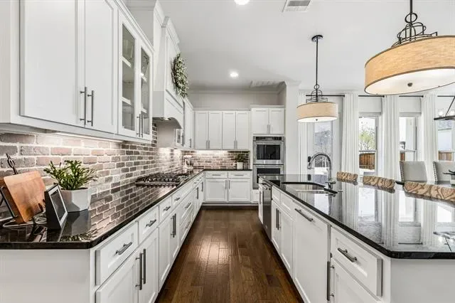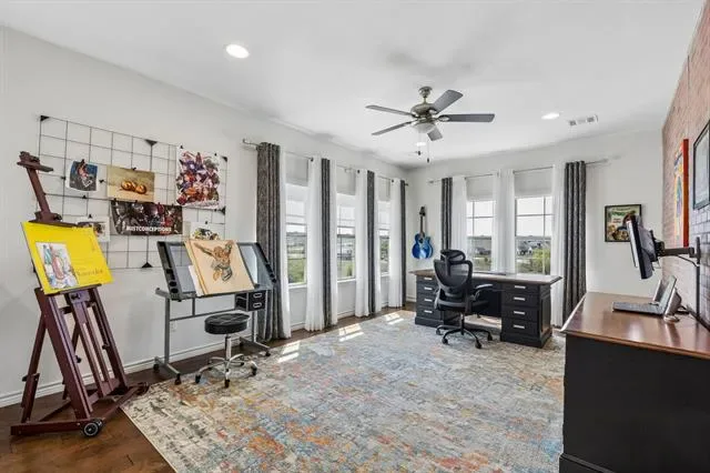 Located in Walsh and zoned to highly regarded Aledo ISD, this home offers 3,435 square feet of light-filled living space. Situated on an elevated lot, it captures views of the adjacent greenbelt and stocked neighborhood pond.
