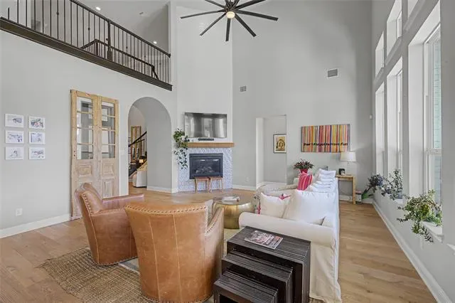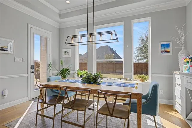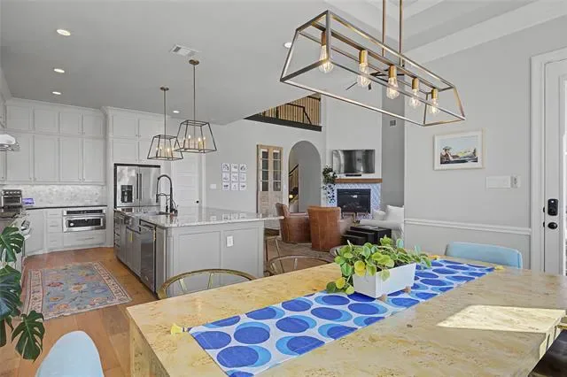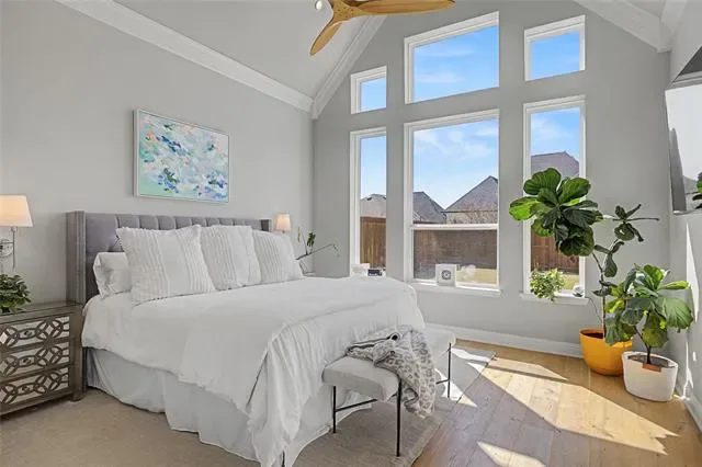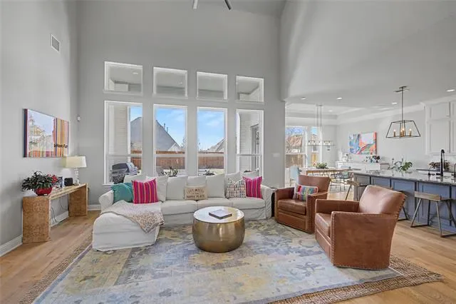 Stunning Toll Brothers custom in Walsh Ranch &' Aledo ISD currently with a SPECIAL OFFER of a 1% lender incentive provided by the preferred lender! From the breathtaking two-story foyer with a sweeping curved staircase, this home radiates modern luxury. The versatile main floor features a dedicated exercise room-office, a private guest suite with a custom walk-in closet and en-suite bath, plus an additional guest bath. The heart of the home is a magnificent two-story family room, where a gas-log fireplace and a wall of windows frame peaceful, private backyard views. For the entertainer, a dry bar and butler’s pantry lead to a gourmet chef’s kitchen. This culinary space boasts a massive central island, premium 6-burner KitchenAid gas range, and dual hot-filtered water dispensers. The adjacent dining area includes built-in cabinetry perfect for wine storage and serving. Retreat to the luxurious primary suite featuring vaulted ceilings and serene views. The spa-inspired bath offers separate vanities, a soaking tub, a shower for two, and an expansive walk-in closet. Upstairs, find a sprawling second living area with built-in storage, plus two generous bedrooms with en-suite baths. Outdoor living is a breeze in the oversized, private backyard—perfectly situated for easy pool installation. Practical upgrades include a finished walk-in attic and an oversized garage with a golf cart bay or storage area, pre-wiring for two EV chargers, and pre-wiring for a home generator. Life at Walsh Ranch is unparalleled, featuring an on-site elementary, miles of hike-and-bike trails, a private lake, and a premier athletic club with pools, splash pads, and sport courts. Experience one-of-a-kind living within the award-winning Aledo ISD.