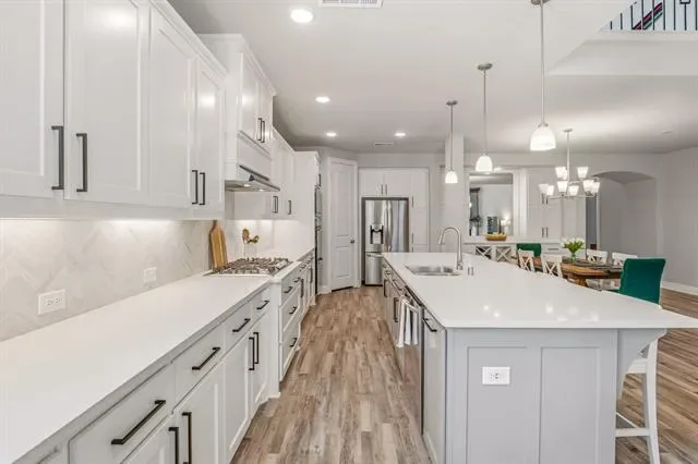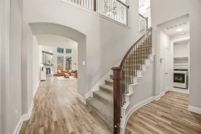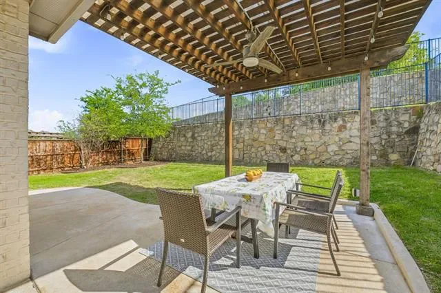 ALEDO ISD! Stunning Highland Homes build on one of the most private lots in Walsh, with no neighbors on three sides and direct access to neighborhood trails just beyond the backyard. This BETTER THAN NEW home is loaded with upgrades and features a highly sought after layout with 4 bedrooms, a game room, media room, and a versatile flex space, offering incredible functionality for today’s lifestyle. An exceptional opportunity in Walsh Ranch offering one of the most spacious 4 bedroom layouts currently available at this price point. The open concept design features soaring 20 foot ceilings, a gas fireplace, and a huge gourmet kitchen ideal for entertaining. Highlights include an oversized island, upgraded cabinetry and countertops, marble herringbone backsplash, gas cooktop, double ovens, walk in pantry, and a built in buffet with additional storage and wine rack. Plantation shutters throughout and tinted windows provide both privacy and abundant natural light. A flexible downstairs space is perfect for a home office, gym, playroom, or additional living area. The oversized primary suite features a spa like bath with soaking tub, upgraded oversized shower, and generous closet space. Step outside to an extended covered patio with pergola and ceiling fan overlooking a tiered backyard and HOA maintained side yard, creating a true lock and leave lifestyle with enhanced privacy. Additional features include fresh landscaping, stone bordered flower beds, oversized garage, and easy access to Old Weatherford Road. Walsh Ranch amenities include 2 gig internet, front yard maintenance, fitness center, pools, parks, trails, co working space, fishing ponds, and more.