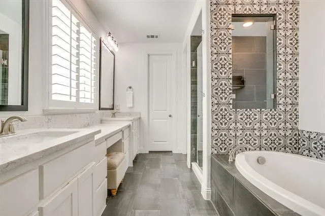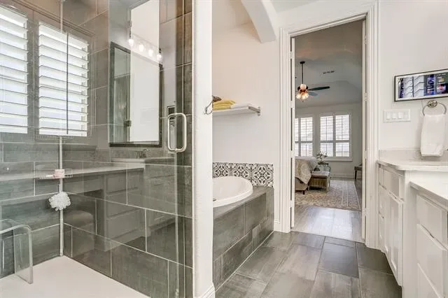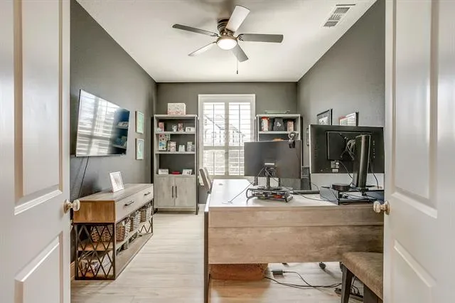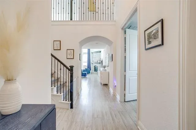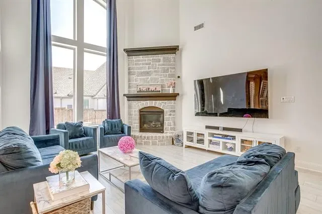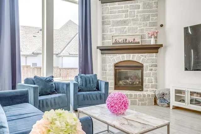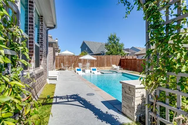 Welcome to this beautifully designed 4-bedroom, 3-bathroom home on a premium corner lot of nearly a quarter acre in the coveted master-planned community of Walsh Ranch in Aledo ISD. The main level features a bright, open-concept layout with soaring ceilings, a spacious living room with fireplace, and a chef-inspired kitchen with custom cabinetry, built-ins, and an inviting dining area—perfect for entertaining. The oversized primary suite offers a serene retreat with a custom California Closet, while the secondary main-level bedroom functions as a private guest suite with its own ensuite bath and custom California Closet. A dedicated office and utility room complete the first floor. Upstairs, you’ll find a large game room, media room, and two additional bedrooms with a shared bathroom—ideal for family or guests. Stunning plantation shutters are installed throughout the home. Rarely available in Walsh, this home features a recently completed pool and spa, both of which can be heated for year-round enjoyment, surrounded by generous patio space for outdoor dining and relaxation, along with the luxury of ample play space on its spacious corner lot. Additional highlights include a 2-car garage with EV charger and beautifully landscaped grounds. Enjoy resort-style living in Walsh Ranch, offering exceptional amenities such as parks, pools, fitness center, maker space, tennis courts, and miles of trails—all within the award-winning Aledo ISD. This home seamlessly combines luxury, comfort, and community—a true Walsh Ranch gem!