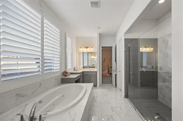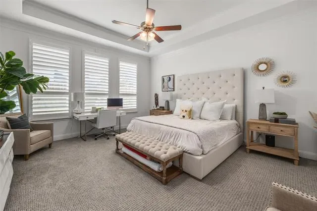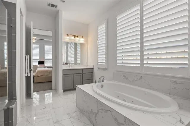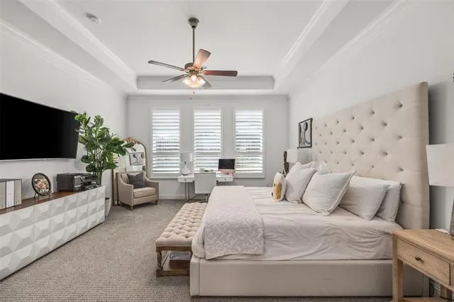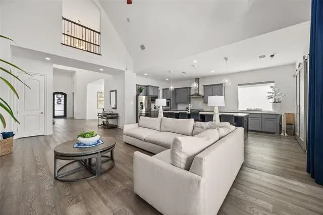 Beautiful Toll Brothers home in Walsh Ranch offering 4 bedrooms, 3.5 bathrooms, and a versatile layout designed for both everyday living and entertaining. Ideally located within walking distance to Walsh Elementary, the market, and community amenities, this home features a grand entry with soaring ceilings, a light-filled living room with dramatic 30+ foot ceilings and a fireplace, and an open-concept kitchen with an oversized island with seating for six, walk-in pantry, bar area, and formal dining. The spacious primary suite includes a sitting area, a well-appointed ensuite with dual vanities, makeup station, large walk-in closet, and an attached flex room perfect for a nursery, office, or gym. Upstairs offers two generous bedrooms, two full baths, and a large media or game room. Sliding glass doors open to a covered patio and expansive backyard with room to entertain or add a pool. Additional highlights include plantation shutters throughout and automatic shades on first-floor windows, plus access to Walsh Ranch amenities including high-speed internet, front yard maintenance, pool, parks, fitness center, sports courts, trails, dog parks, makerspace, market, and more.