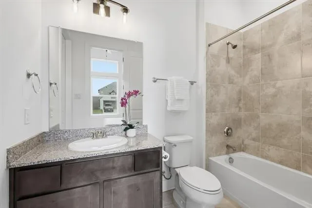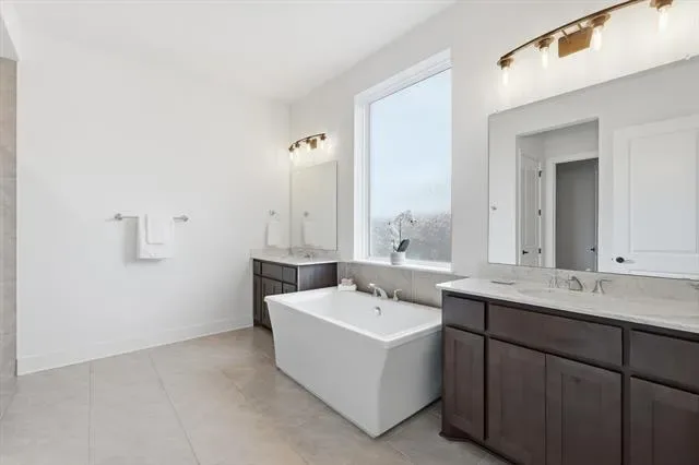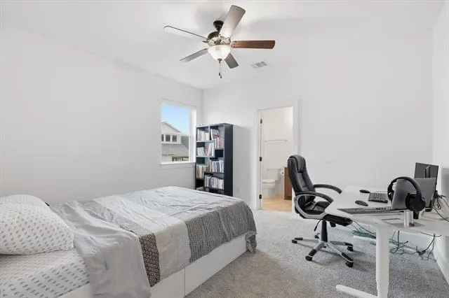 All brick home built by Toll Brothers with many builder upgrades, this impeccably maintained 4 bedroom, 4.5 bath home offers the perfect blend of thoughtful design and everyday functionality. The open concept floor plan creates seamless flow for entertaining and daily living, with two spacious bedrooms conveniently located on the main level. Each bedroom features its own private ensuite bath, offering comfort and privacy for family and guests alike. The heart of the home is the beautifully appointed eat in kitchen with quartz countertops, complete with rich wood stained cabinetry and generous workspace, opening effortlessly to the living and dining areas. Electric blinds in great room and kitchen. A dedicated office provides quiet space for working from home, while the upstairs media playroom offers the perfect retreat for movie nights. Step outside to the covered back porch, already equipped with a gas line. The two car garage includes deep TANDEM space, perfect for additional storage, a workshop, or recreational equipment. Located near the elementary school, parks, pools, and all the exceptional amenities Walsh has to offer, this home delivers not just beautiful living space but a vibrant, connected lifestyle. EV charger in garage. Buyer and Buyer’s agent to verify all room measurements and schools.