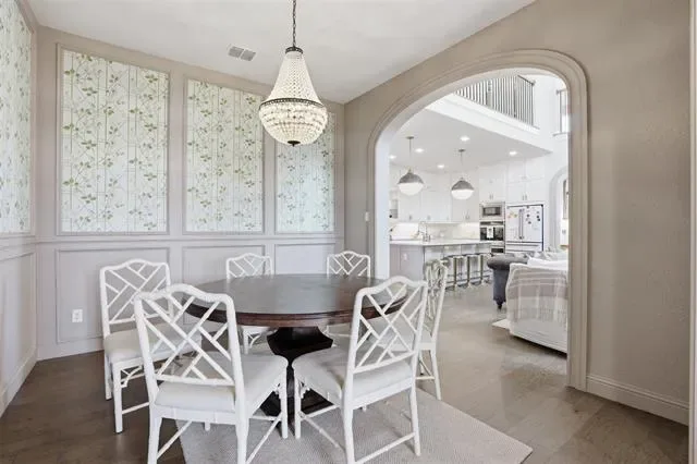 With over $250,000 in curated upgrades, the home showcases a seamless blend of elevated design and everyday functionality, influenced by A Well Dressed Home and the homeowners’ vision. Designer lighting from Visual Comfort, custom cabinetry and millwork, Schumacher wallpaper, and upgraded hardware and fixtures are found throughout.