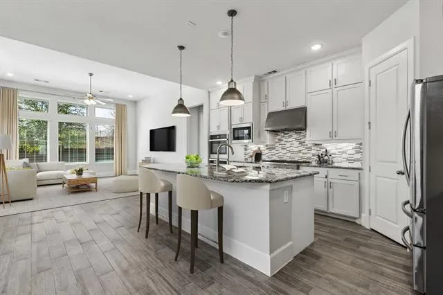 Located near the Walsh amenities and zoned to Aledo ISD, this David Weekley Pin Oak floor plan in Phase 1 is one of the community’s most sought-after layouts. Built in 2019 and move-in ready, this home offers the benefit of avoiding the timeline and uncertainty of new construction. Thoughtfully designed with both the primary suite and a private guest suite on the main level, the layout provides flexibility without sacrificing flow.