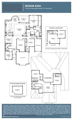 Home office with French doors set at entry. Formal dining room. Media room. Family room with a corner fireplace and a wall of windows. Kitchen features an island with built-in seating space, walk-in pantry and butler’s pantry. Morning area with a curved wall of windows. First floor guest suite. Private primary suite with double door entry features a wall of windows. Primary bath with dual vanities, garden tub, separate glass-enclosed shower and two walk-in closets. Secondary bedrooms and game room complete the second floor. Covered backyard patio. Three-car split garage.