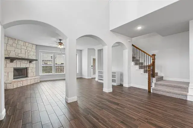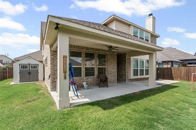 Welcome to 520 Ridgewater Trail—an exceptional, barely-lived-in home that’s just 2 years old and filled with style, space, and smart design.This gorgeous 2-story home with 4 BR, 3.5 BA, and 3-Car Garage is located in a peaceful, well-maintained Fort Worth Watersbend neighborhood and offers the perfect blend of comfort and function plan. This home is equipped with beautiful Wood-look Tile flooring throughout common areas, and a Deluxe Kitchen with Built-In Appliances &'Quartz Counters. The Open-Concept living space is designed to fill with natural light thanks to the Raised Ceiling, 2-story windows at the Breakfast Nook, Arched Cutouts, and Window-Lined Walls. Formal Dining Room off entry, The private primary suite is located downstairs and offers a luxurious retreat with dual vanities, a soaking tub, separate walk-in shower, and a large walk-in closet. Upstairs, you’ll find a versatile game room, a flexible bonus space perfect for a study or playroom, and three additional bedrooms. One of the upstairs bedrooms includes a private ensuite bath and walk-in closet—ideal for guests or multi-generational living—while another opens to a charming private balcony, creating a unique and inviting space. Additional features include an extended covered back patio, a spacious 3-car garage, smart-home capabilities, walk-in closets throughout, upgraded flooring, and fresh, modern finishes. This home is move-in ready and offers the feel of new construction without the wait. Convenient to shopping, dining, and major highways—this one checks all the boxes! Bank approval required.