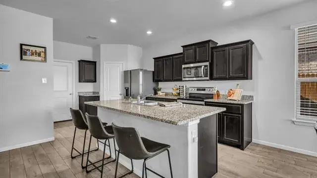 FINANCING OPTIONS: Lender credit' lease to own option' OR assume the current mortgage loan with a 3.125% rate!!! Welcome to 9224 Red Brush Trail in the sought-after Watersbend South community! This one-owner, nearly new home (built in 2021) offers 4 bedrooms, 2 baths, and a 2-car garage. The open-concept design features ceramic wood-look tile in the main living areas and granite countertops. The spacious kitchen is complete with a pantry, refrigerator, and a large island made for barstools — perfect for meal prep and casual gatherings. This popular floorplan offers a split-bedroom concept, a nice entryway, a designated dining area, and a separate laundry room. The primary suite boasts a spacious walk-in closet, and all bedrooms provide generous living space. Ceiling fans, window blinds, and a security system add convenience and comfort. Step outside to a fully fenced backyard with wood fencing and a level layout that’s ideal for pets and play. This home offers a convenient location near the schools, shopping, dining, and everyday conveniences within a short drive — including major retail centers, grocery options, and more. The Watersbend South community offers sidewalks, two pools, a playground, and a park, making it a wonderfully complete community for both daily life and recreation.
