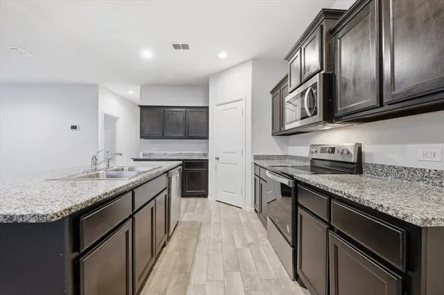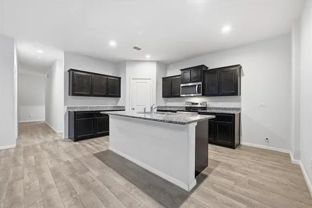 WOW! This SINGLE-STORY gem has 5 BEDROOMS &' looks brand new! The living room &' dining area are drenched in NATURAL LIGHT, showing off durable WOOD-LIKE TILE FLOORING that can handle spills, paw prints or just everyday life. The kitchen has everything you need &' more! It offers PLENTY of CABINETS, an ISLAND with STORAGE &' EXTRA SEATING &' a WALK-IN pantry for all the snacks you secretly hide. Your primary suite is a little slice of heaven with DUAL SINKS, a GARDEN TUB &' enough space to unwind. Even the secondary bedrooms are comfy &' ready to take whatever life throws at them! HOME OFFICE, GUEST ROOM or HOME GYM? You’ll have space for it all! The COVERED PATIO leads to a PRIVATE BACKYARD perfect for BBQs, morning coffee or just soaking up some fresh air without peeking neighbors. This home is just waiting for you. Pack up &' move right in!