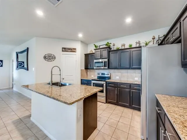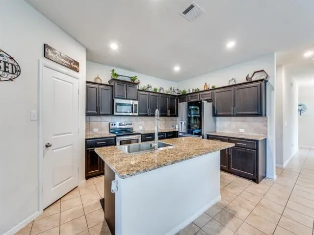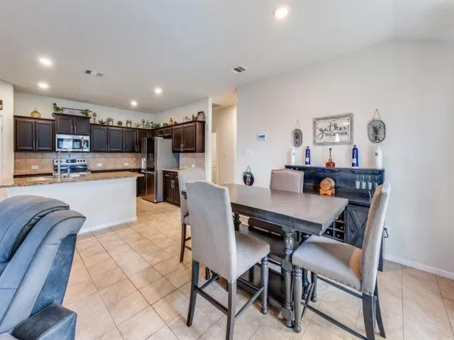 Beautiful home in highly sought Watersbend South, kept to perfection with attention paid to every detail to delight the most discerning buyer’s expectations awaits your arrival! The manicured front lawn and fresh flowers greet your arrival, while your entry leads directly to gourmet kitchen at the heart of the home, featuring granite countertops, stainless steel appliances, and abundance of cabinet space and full walk in pantry to delight the family chef! Open to the kitchen across a spacious breakfast bar is the dining area and inviting family room with plenty of space for family time and a wall of windows overlooking the amazing extended patio with vaulted ceiling’d cedar cover the full width of the home, complete with lighting, multiple ceiling fans, a serving bar and plenty of seating room for sunset gatherings! Primary suite features a huge walk in closet for the family clothes horse and overlooks the covered patio and private backyard great for the kids to run and play or Sunday afternoon BBQS at your place. Three more oversized bedrooms and an adjoining hall bath are perfect for your growing family needs. Available for quick occupancy and priced to sell so put this fabulous home at the top of your list!
