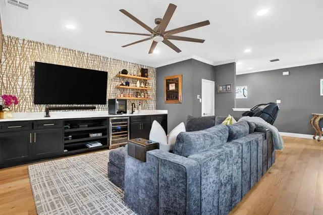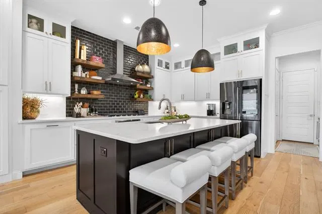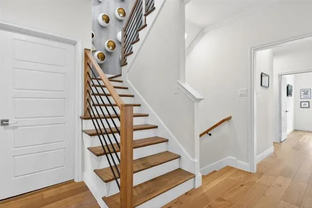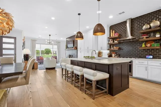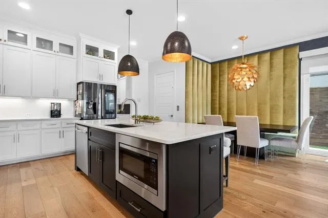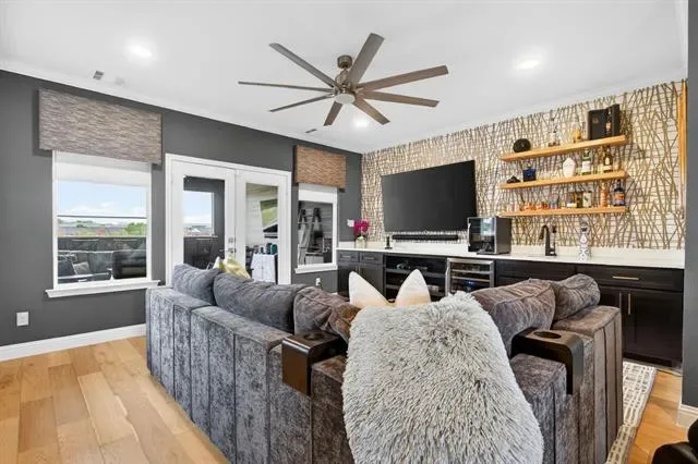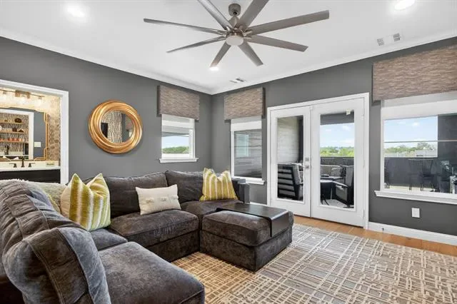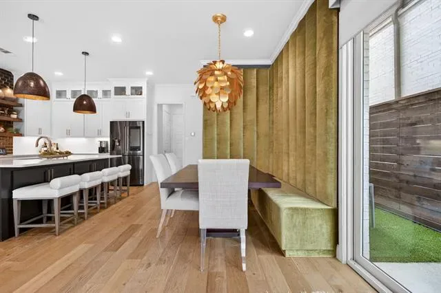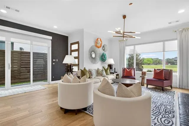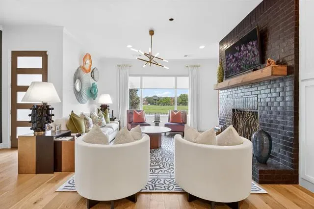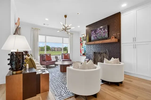 Rare opportunity to own a luxury townhome overlooking the Trinity River. This one-of-a-kind residence is beautifully appointed with designer finishes throughout, and includes a private elevator for added convenience. As you enter, a custom velvet-tufted banquette makes a statement anchoring the space as it opens to the kitchen and living room. The kitchen features ample cabinet and storage space, an oversized island, and beautiful quartz countertops. Additionally, you will notice elevated window treatments and curated light fixtures that carry throughout the home, adding a polished finish to every space. Featuring three bedrooms, two full bathrooms, and two half-baths, the thoughtfully designed layout provides effortless living on every level. The primary wing offers a luxurious retreat with dual walk-in closets and an oversized bath featuring a soaking tub and separate shower. The third floor boasts a spacious second living area, a half bath, and an oversized covered patio with scenic views overlooking the trails. Step right outside your front door to enjoy miles of walking and biking paths along the Trinity River. As an end unit, this townhome offers additional outdoor space, enhanced privacy compared to other units, and radiant natural light. The HOA covers lawn care, sprinkler system, insurance of the common areas and exterior residences, and roof. Ideally located within walking distance to Waterside’s premiere dining, fitness, and shopping including Whole Foods, Piatello, and other sought-after destinations.