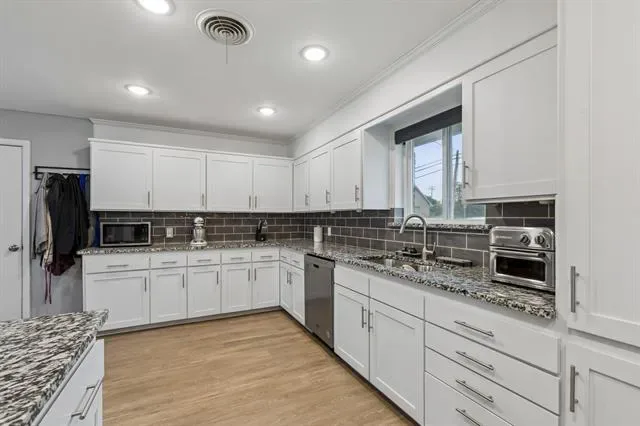 Welcome to Wedgwood! Step into this turn key mid-century modern wonder. This 3 bed, 2 bathroom home is the one! Situated on a large corner lot with mature trees and curb appeal, it offers floor to ceiling windows giving you endless natural light, a formal dining room for entertaining family, and friends, stunning exposed brick, a remodeled kitchen with stainless steel appliances with all the storage space, and a relaxing backyard oasis! Within walking distance to Bruce Shulkey and conveniently located near all the shopping, dining, and entertainment offered near Hulen! Recent updates include: 2023: Roof, flooring throughout, water heater, electrical panel and water pressure regulator. 2024: New insulation, new fans and light fixtures updated. Excellent investment home opportunity!