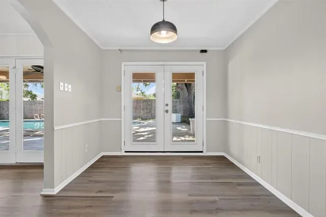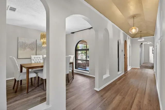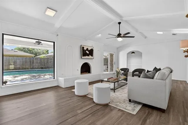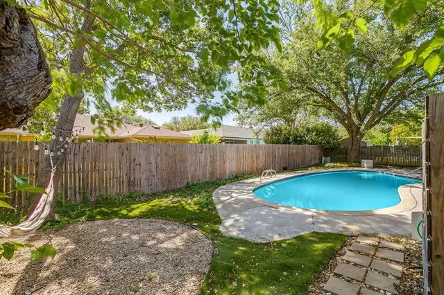 Opportunities like this don’t last—make your move before someone else does! This poolside paradise has been upgraded in all the right places while still preserving the mid-century architectural charm! Brand new LVP flooring, granite countertops and designer-inspired lighting are just a few of the features you will love beyond having a spacious 4 bedroom home in Fort Worth! The kitchen has been thoughtfully upgraded with granite countertops, an interlocking quatrefoil-inspired backsplash, an electric retro oven and brand new flooring that seamlessly flows into the formal dining room, breakfast nook and the picture perfect living room! With a cozy gas fireplace, vaulted and beamed ceilings, a huge picture window and a series of charming arched niches, this living room needs no introduction! Head down the hallway past the three generously sized bedrooms and take note of the stunning full bath on your way to the primary en-suite – your final retreat! Not only does this large haven have TWO separate closets, a chic bathroom with an oversized vanity perfect for getting ready, but it also has glass french doors leading to your outdoor oasis! The pristine pool is such a mesmerizing showstopper you could easily overlook the pebbled hammock cove with dreamy string lights, or the more discrete details on the covered patio such as the tropical leaf fans and woven chandelier adding comfort and ambience to your sunset soiree! Homes like this don''t last – tour today and picture the life you could already be living!