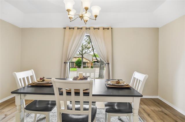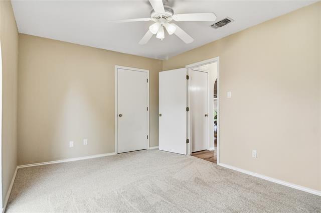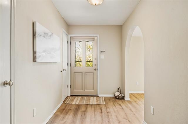 This beautifully refreshed Wedgwood ranch is move-in ready and sits on a spacious, corner lot with mature trees, extensive stone landscaping, and a tall privacy fence. Enjoy quick access to the Chisholm Trail while tucked into a quiet pocket in the neighborhood. No cast-iron worries here — all plumbing drains have been replaced with new PVC! Step inside to a cheery, open feel with neutral colors throughout. The kitchen is bright &' modern with stunning white quartz countertops with elegant soft gold veining (a higher-grade material chosen to coordinate perfectly with both tans and grays) spanning over 20 linear feet. Abundant flat panel shaker style cabinetry (soft-close) crafted from maple – boasting 24 doors and 10 drawers, far more storage than most homes in this price range. Rounding out the kitchen is a fresh new backsplash, a new vent hood, newer cooktop, canned lighting, a pantry and eat-in breakfast area. Both bathrooms have been revitalized with matching quartz countertops, new undermount sinks, new faucets, fixtures, toilets, mirrors, lighting and LVP flooring. The hall bath showcases a newly refinished cast iron bathtub paired with an elegant new ceramic surround complete with built-in niches. This home offers excellent square footage and versatility. The flexible 2nd living area features a full wall of windows overlooking the backyard. The thoughtful split bedroom layout provides privacy, and the spacious primary suite easily fits a sitting area, office, or nursery with its large dual-sink vanity and two walk-in closets. Abundant built-in storage throughout includes a closet in the formal dining room. Outside, relax on the covered patio and enjoy the large, fully fenced backyard with a detached workshop. Spring planting is already started with flowers in place, plus hostas, azaleas, and productive fruit trees (apple and peach). This fresh, clean, and thoughtfully updated home delivers great value and the feeling of spaciousness the moment you walk in.