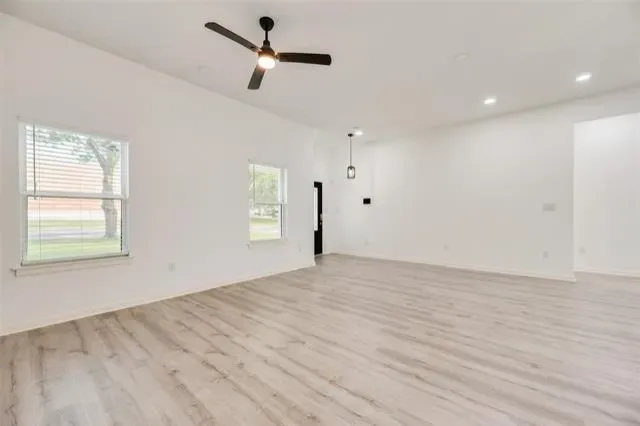 Like new modern farmhouse beauty built in 2024 with open modern floorpan! 4 bedrooms, 2.5 baths, 2 living areas, or playroom and bonus exterior building with cooling that can be utilized as workout room or workshop with refrigerator, large screen television and separate storage area. Beautiful blonde luxury plank flooring, excellent split master bedroom arrangement with separate tub and walk in shower. Gorgeous modern open kitchen area with granite countertops, stainless steel appliances including refrigerator and washer and dryer. Energy efficient with foam insulation. Exterior features include cozy front porch, full sprinkler system, and 7 foot wood fence for extra privacy. Excellent location, with easy access to central Fort Worth and everything Ft. Worth has to offer.